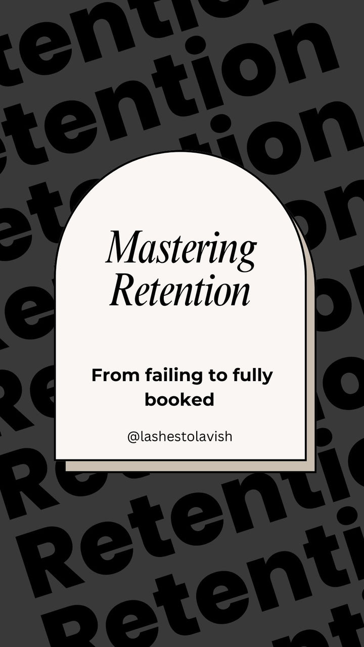 This 30 page ebook Inside this invaluable resource, you'll discover a treasure trove of expert tips, techniques, and industry secrets to help you skyrocket your retention rates and elevate your lash game to the next level. Whether you're a seasoned lash artist or just starting out, this eBook is your roadmap to success in the competitive world of lash extensions.