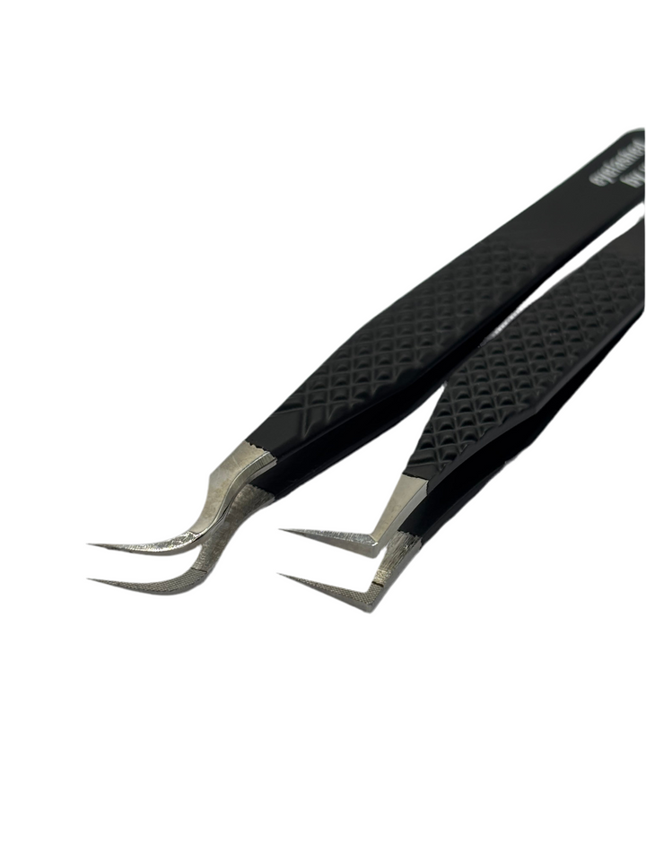 Meet the ultimate lash artist power pair. The U Hooked Tweezer gives you flawless control for fan creation with its perfect curve, while the Probtip Tweezer delivers unmatched precision with its sharp L-shaped fiber tip for clean isolation and secure placement.